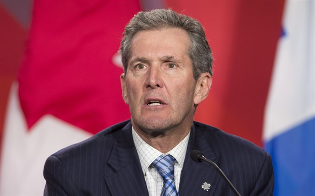 Manitoba premier brian pallister speaks during his cabinet shuffle at the manitoba legislature in winnipeg on august 1, 2018.